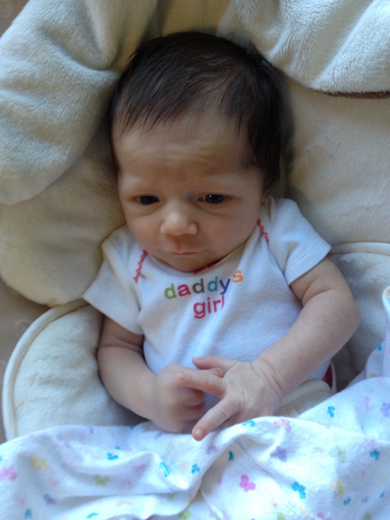 I know I need to post more photos of her, but she's asleep in her swing right now, and it's difficult to get a decent photo. I'll post some tomorrow.